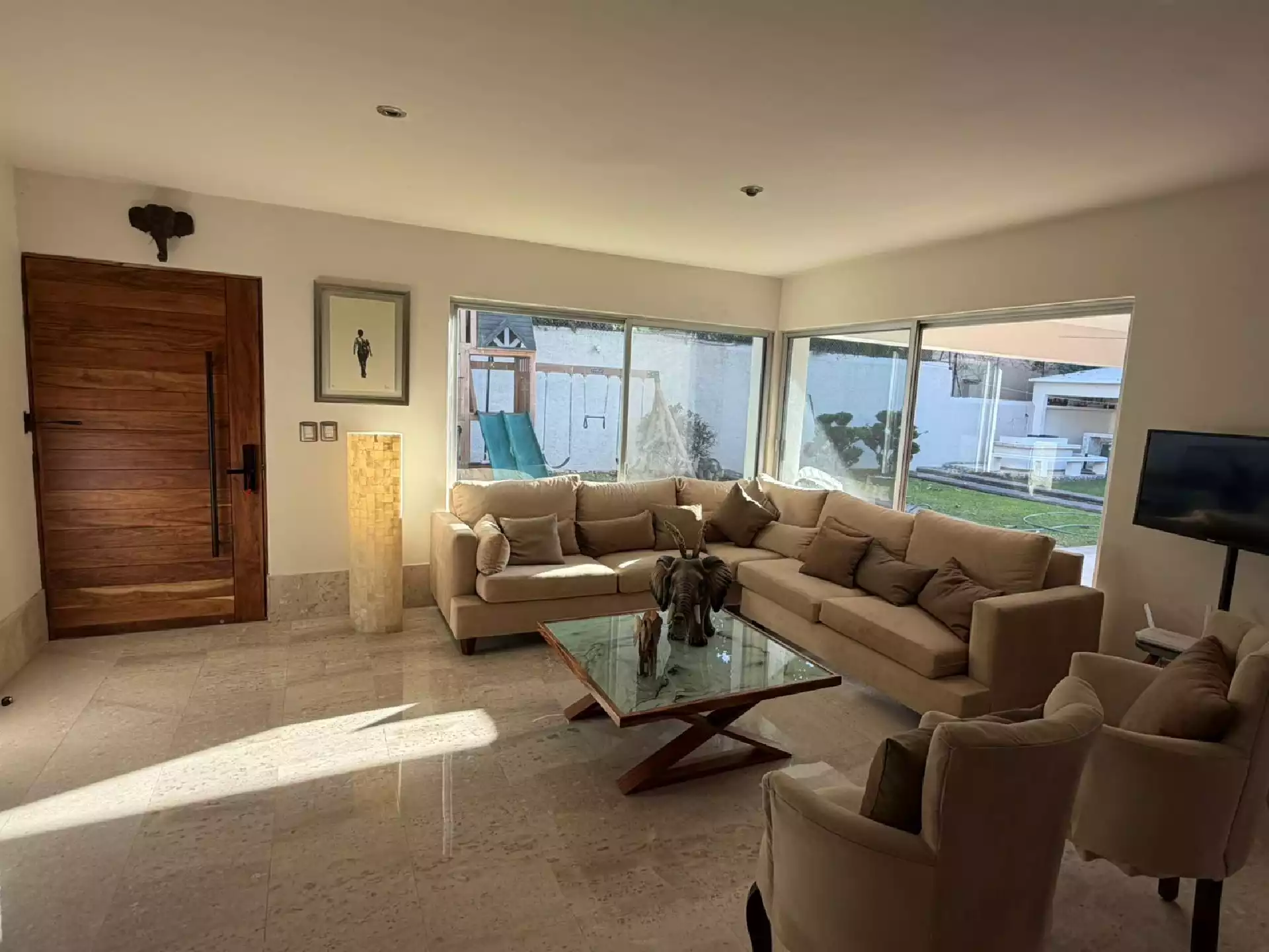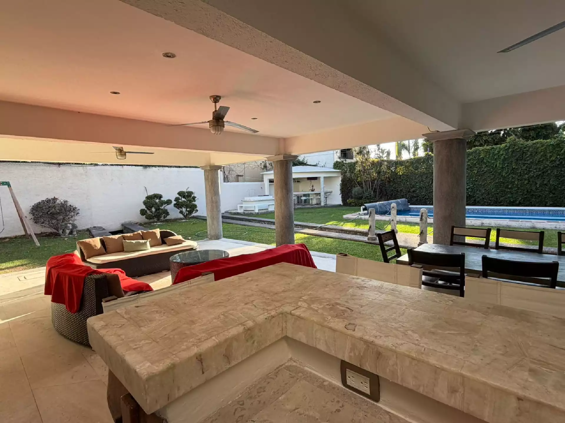 Casa en RENTA en Fracc SUMIYA recién remodelada con mármol y madera sólida de Tzalam 2 habitaciones con 2 baños completos , Sala - comedor , cocina integral , cto de lavado Terraza , Palapa bar , amplio jardín con alberca Entrada para 2 autos