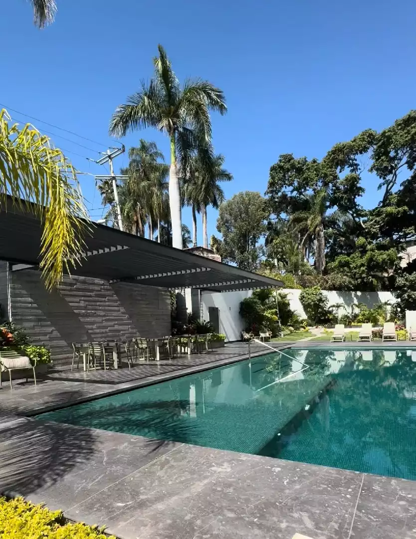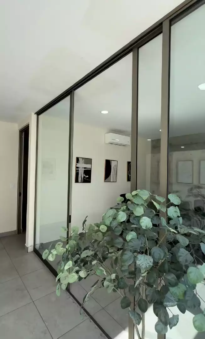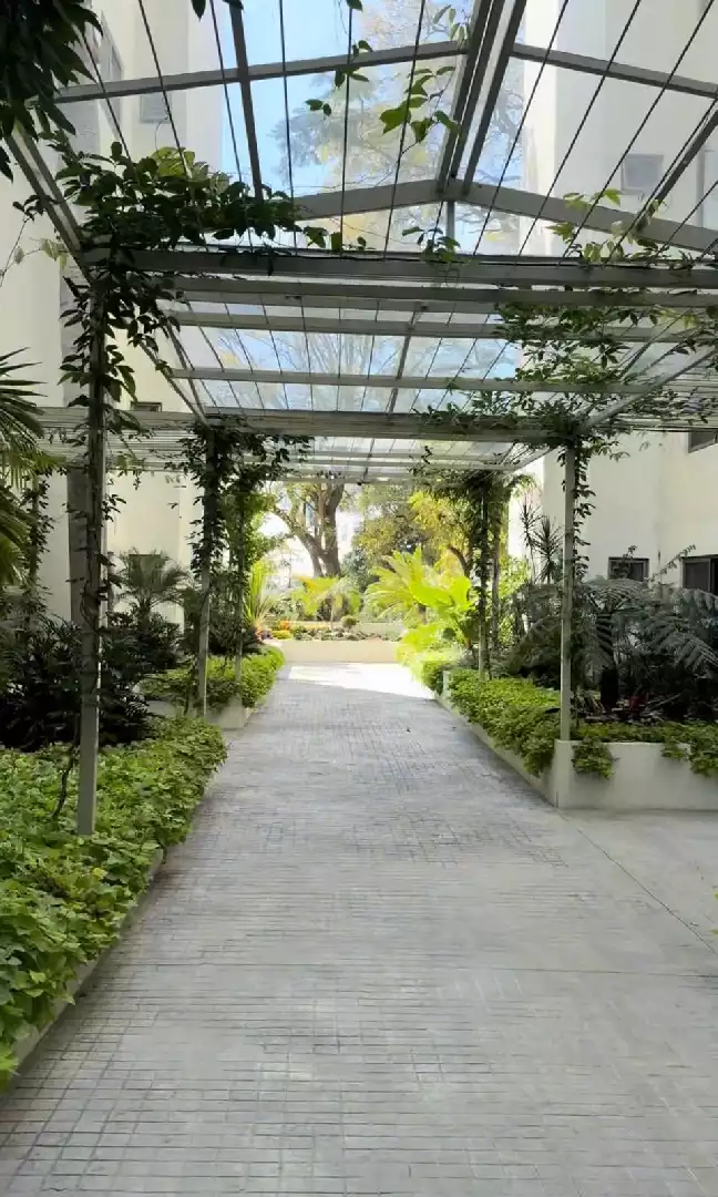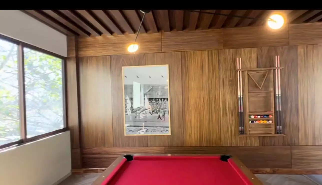 Departamento que tiene 2 recámaras, 2 baños, sala, comedor,patio de servicio,cocina equipada, 2 estacionamientos techados, elevador, amenidades para compartir: 2 canchas de padel, oficinas y salas de juntas, salon de usos múltiples, 2 salones de fiestas para eventos, terrazas, area con asadores, bodega, alberca y jacuzzi, Gimnasio, sala de cine, cafeteria,ludoteka, jardines, juegos infantiles y vigilancia. El mantenimiento está incluido y pueden usar al mes $350 para consumo en la cafetería .