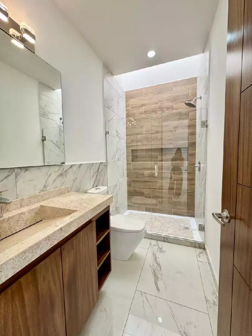 • Amplia estancia sala – comedor • Hermosa cocina equipada • Terraza • Amplia recamara con vestidor, baño completo • Estudio • Medio baño • Cuarto de servicio con baño completo • Área de lavado